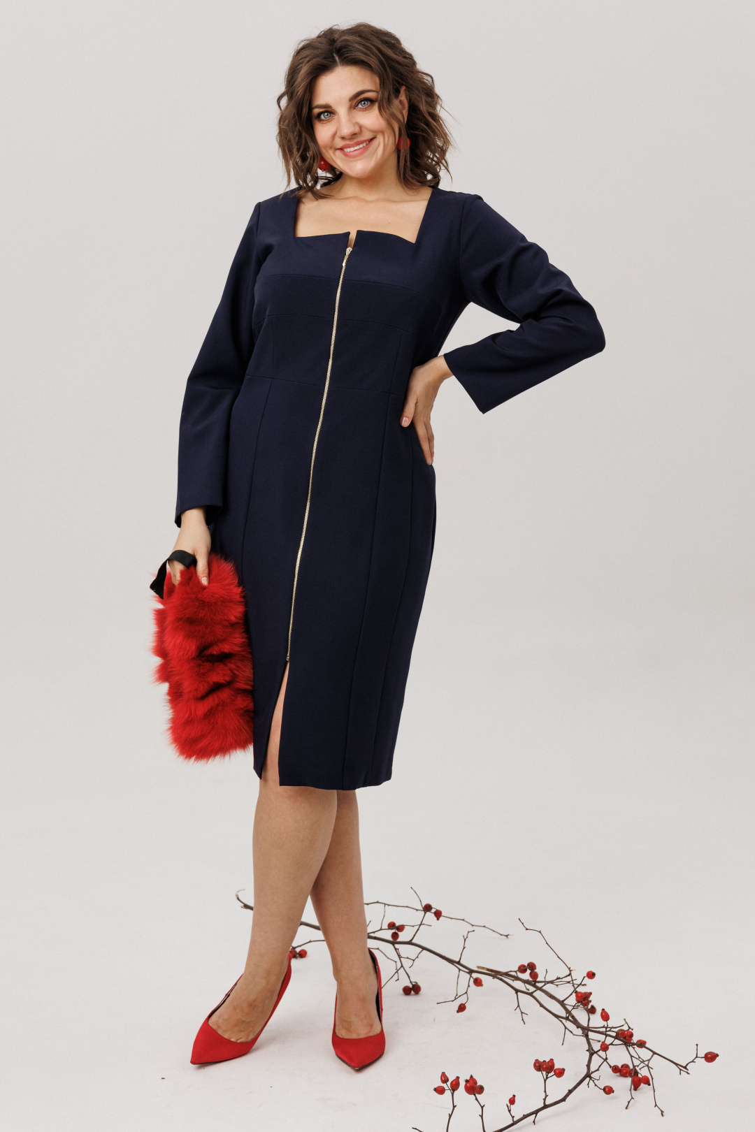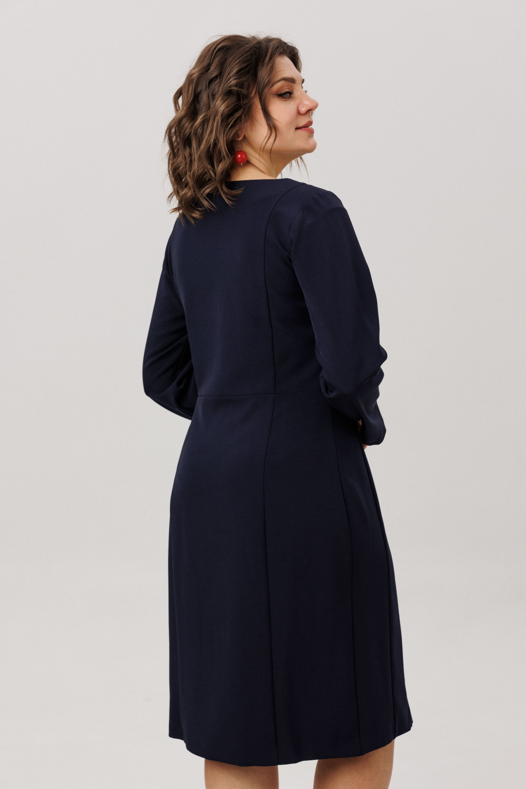 Это платье от Анелли - это архитектура для тела, где каждый шов и изгиб продуман до совершенства. Его полуприлегающий силуэт, мягко повторяющий линии фигуры и расширяющийся ниже колена, подобен изящному фасаду, где игра света и тени создает глубину.