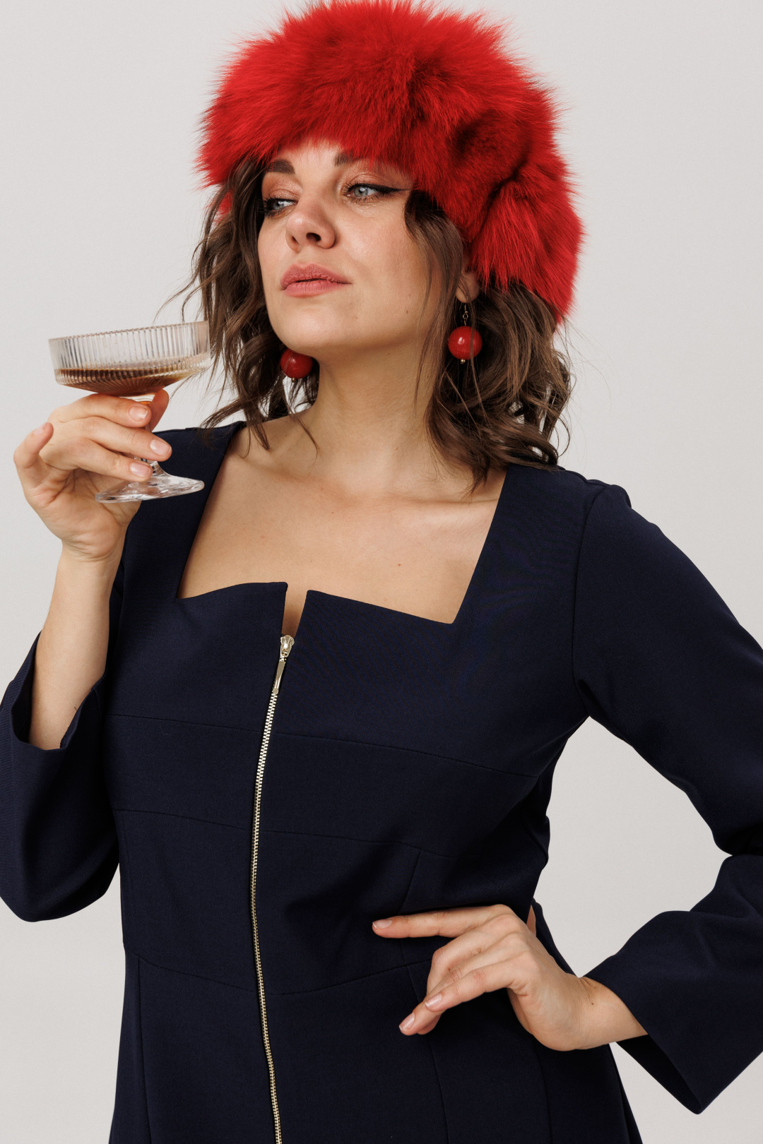 Главным элементом этого платья выступает геометрический вырез, смелый и точный, как чертеж. Он становится отправной точкой для рельефных подрезов лифа - тонких, словно намеченных острием циркуля, линий, которые продолжают его строгий рисунок. Эти скульптурные детали, спускаются по переду и спинке, подчеркивая отрезную талию и создавая игру объемов.