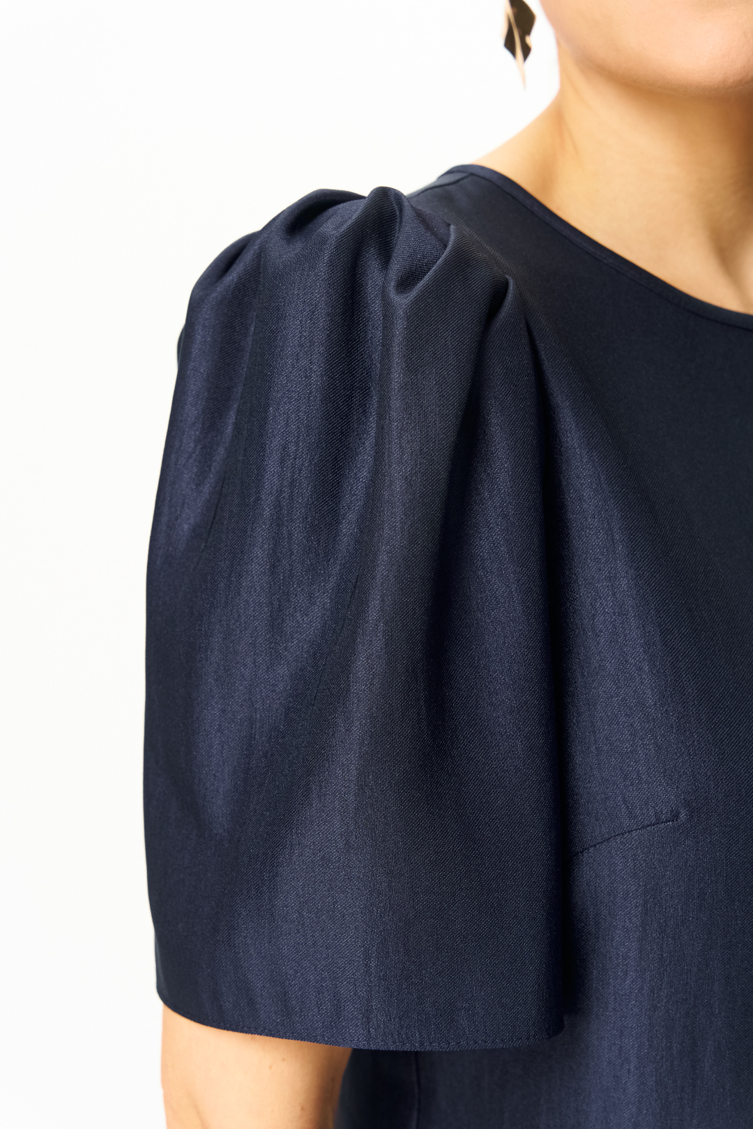 Элегантное женское платье, выполнено из плательной ткани с небольшим блеском.